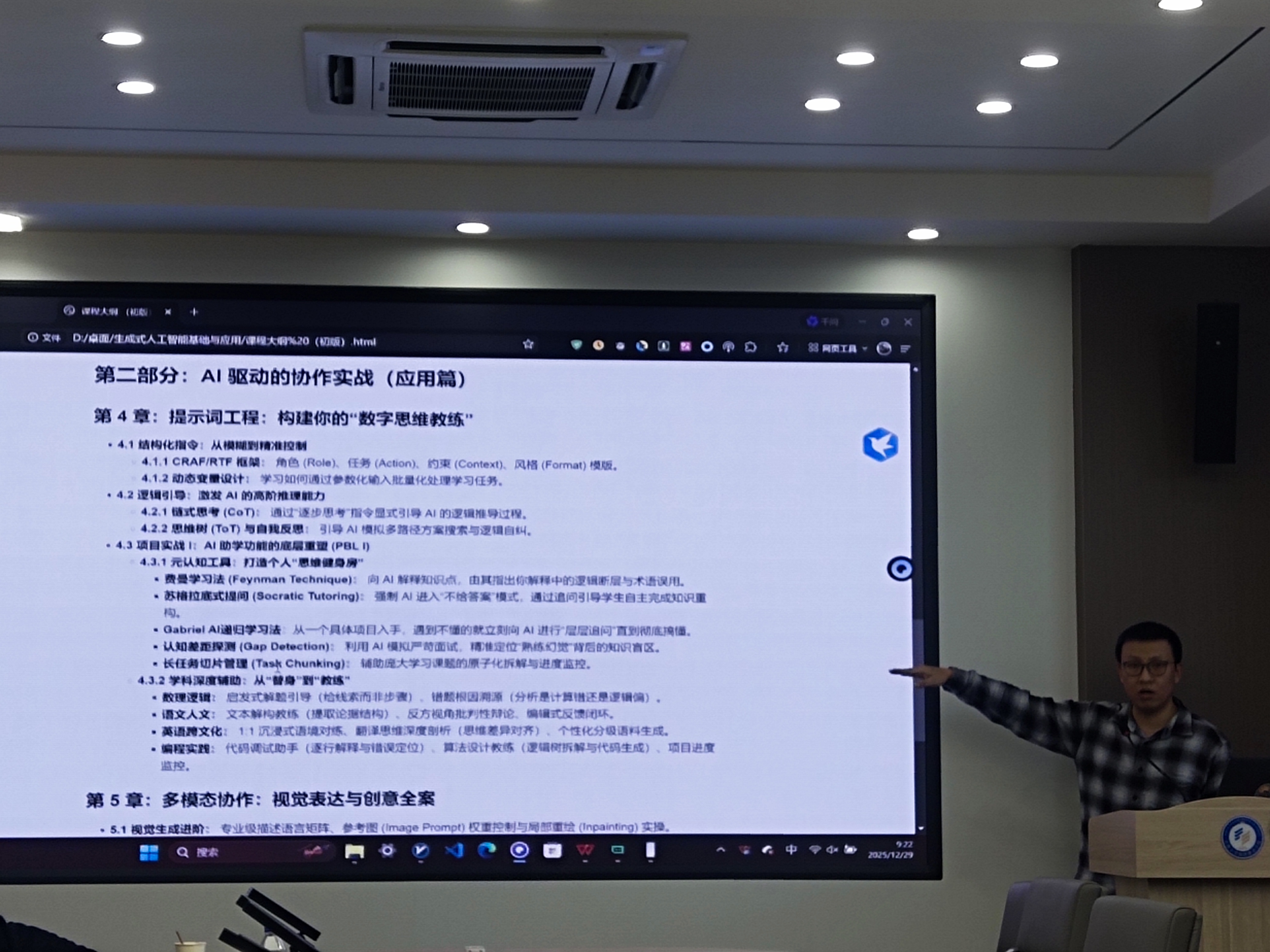 学院2025-2026学年第一学期教师试讲于12月29日上午在413交互式空间室开展。张帆老师的新开选修课《生成式人工智能基础及应用》进行试讲;betway西汉姆联官网外国语言文化学院的黄敏老师也参加了本次集体备课交流会。活动由教学委员会副主任赵娜主持,全体教学委员会委员参加并对试讲课程担当评委。