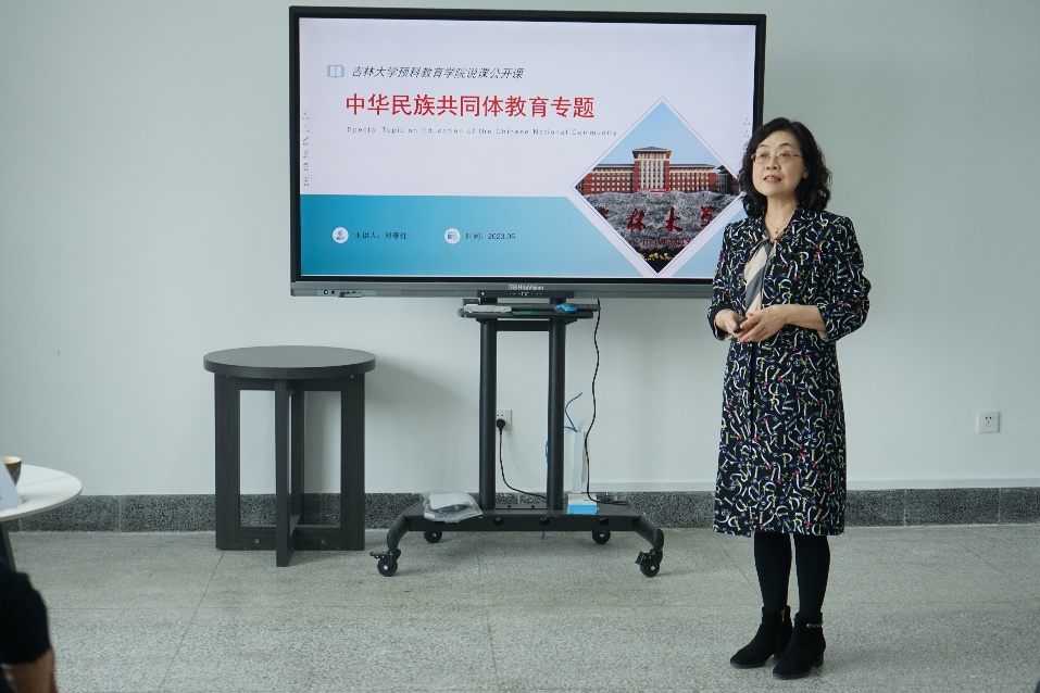 本次活动是学院2023年“讲述教学设计 提升综合能力”公开课系列之一,邓春红老师就其讲授的“中华民族共同体教育专题”课程进行了说课。她首先介绍了课程背景分析、课程总体设计与教学内容,然后介绍其所采用教学方法与教学手段、课程考核方式,并以课程第二单元为例,讲述了具体的教学组织与实施,最后她谈了自己在教学实践中的体会和感悟。