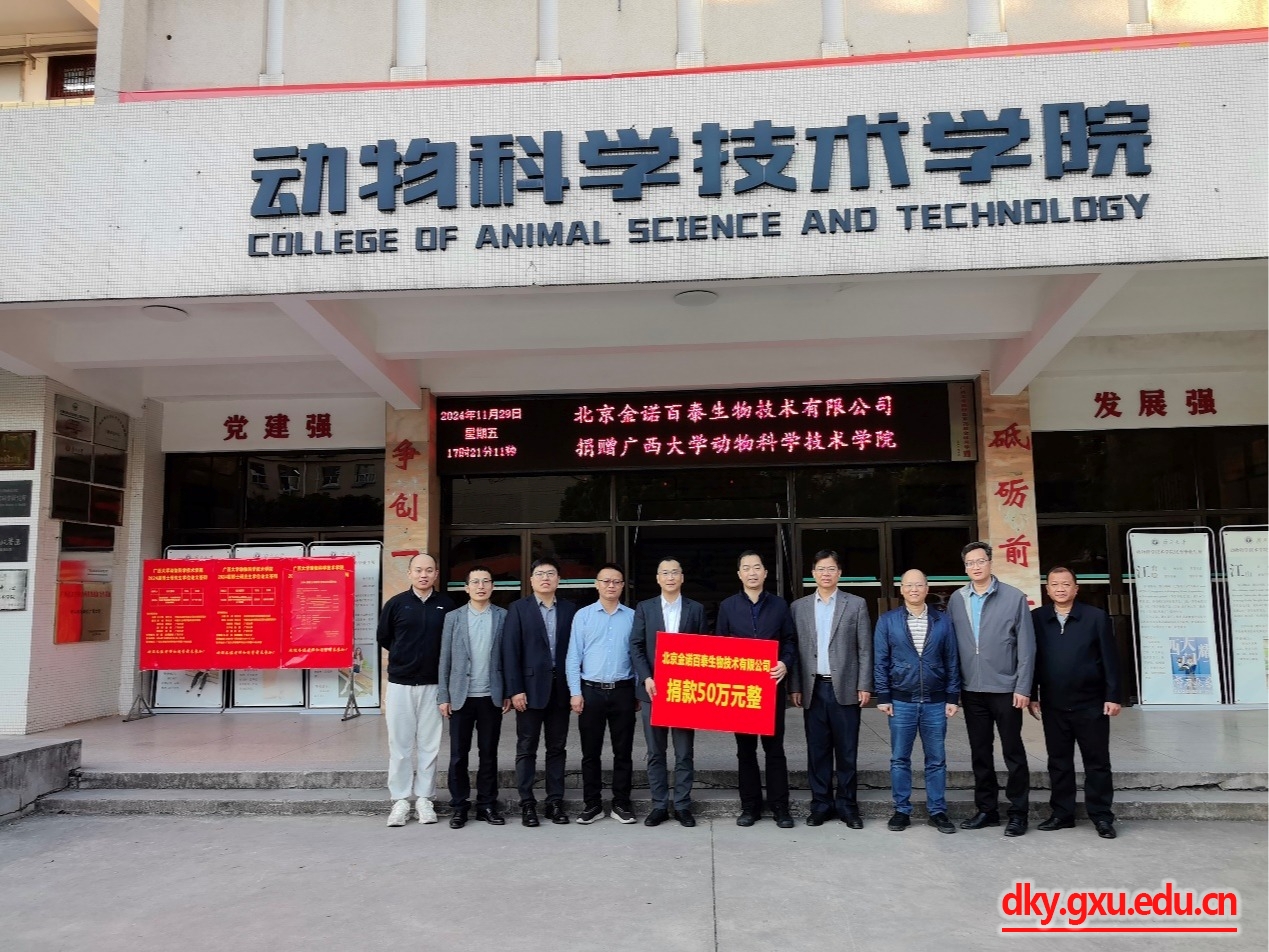 韦小强书记代表学院全体师生对北京金诺百泰生物技术有限公司的热心资助表示感谢,也感谢覃伦校友促成此事。他表示,金诺百泰公司的捐赠是对学院人才培养的支持与肯定,希望学院与公司在人才培养、科学研究方面有更深入的交流与合作,为社会培养更多优秀的高级畜牧专业人才。
